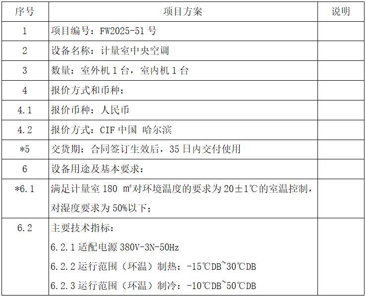 1.2 項(xiàng)目名稱:哈量公司計(jì)量室空調(diào)升級改造采購項(xiàng)目